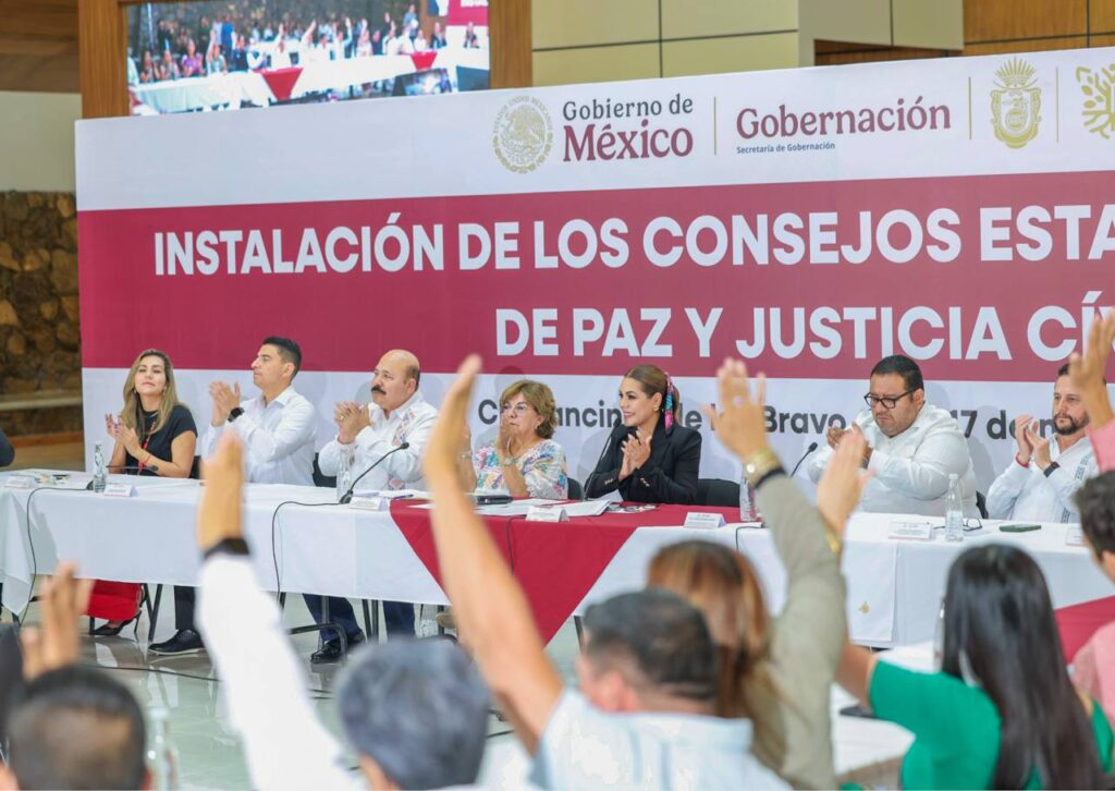 La gobernadora Evelyn Salgado Pineda, en compañía de la subsecretaria de Construcción de Paz, Participación Social y Asuntos Religiosos de la Secretaría de Gobernación, Rocío Bárcena Molina, instaló el Consejo Estatal y los Consejos Municipales de Paz y Justicia Cívica, con el objetivo de impulsar acciones para fortalecer la paz, la justicia y el bienestar social en Guerrero.